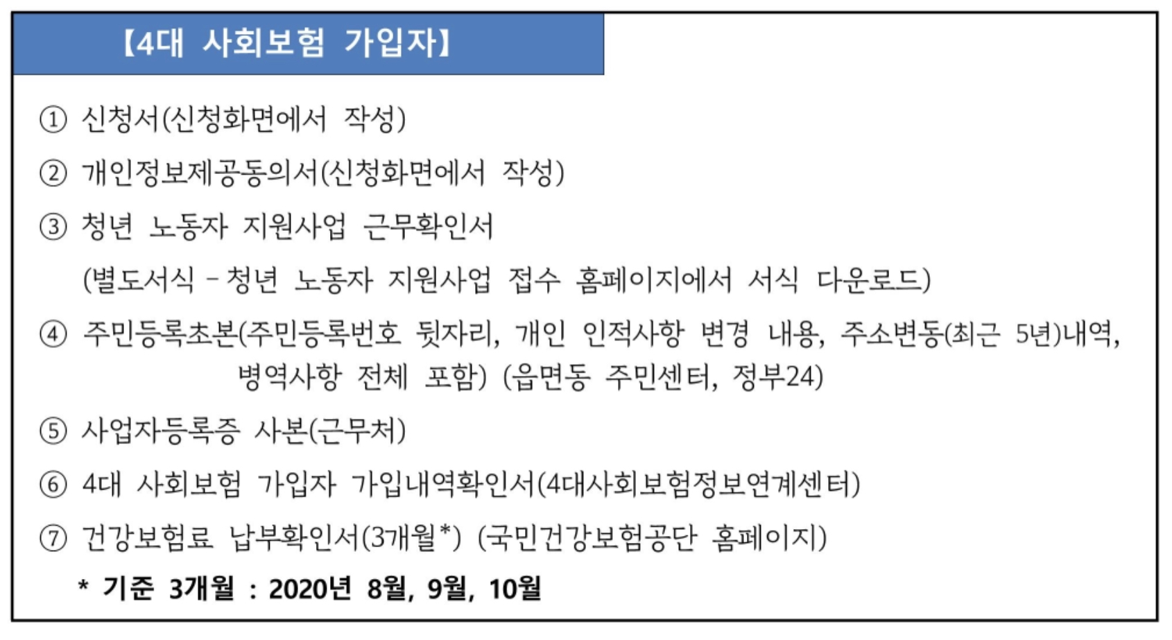- 신청은 4대 사회보험 미가입자도 신청이 가능합니다.