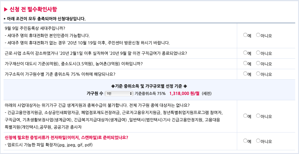 - 기준이 많이 완화되었습니다. 따라서 기존 기준때문에 혜택이나 신청을 못하셨다면 확인 후 해당사항을 참고하시여 지원금 신청 부탁드립니다.