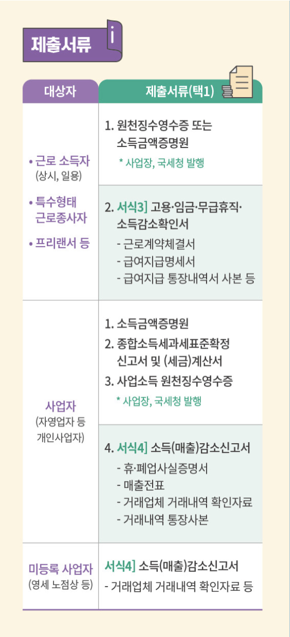 코로나19로 인한 소득감소 (25%이상) 대상자에게 최대 40~100만원 지급