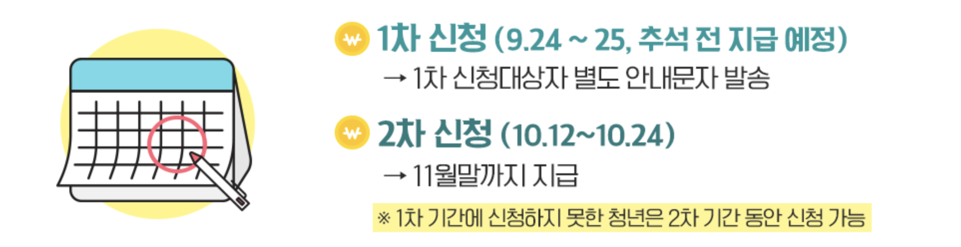 - 신청기간: [1차 신청] 9/24~25 기간동안 접수 후 추석 전 지급 예정