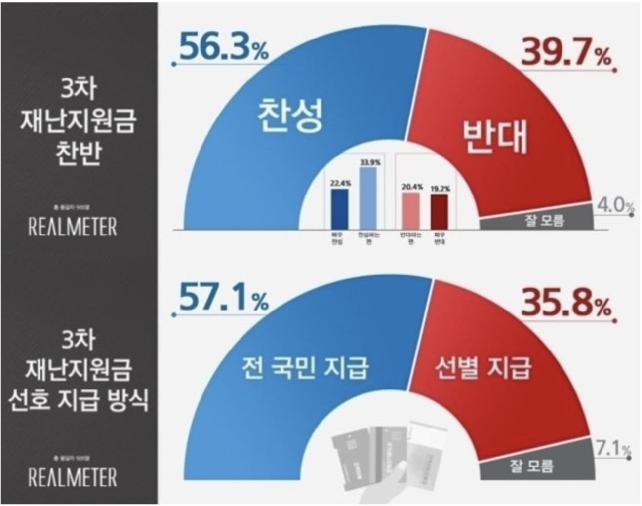 - 여론조사에 따르면 리얼미터에서는 전국민 지급이 약 57%나 되지만 갤럽조사를 보면 소득고려를 통한 선별지급이 약 41%로 우세하여 지원형태에 대해서는 좀더 면밀한 조사가 필요할것 같습니다. 더군다나 이번 단계격상에 따른 피해도나 지속여부가 아마도 큰 변수가 될것 같습니다.